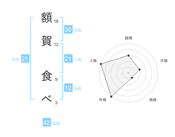 額賀 食べさんの総格は42画の3点!