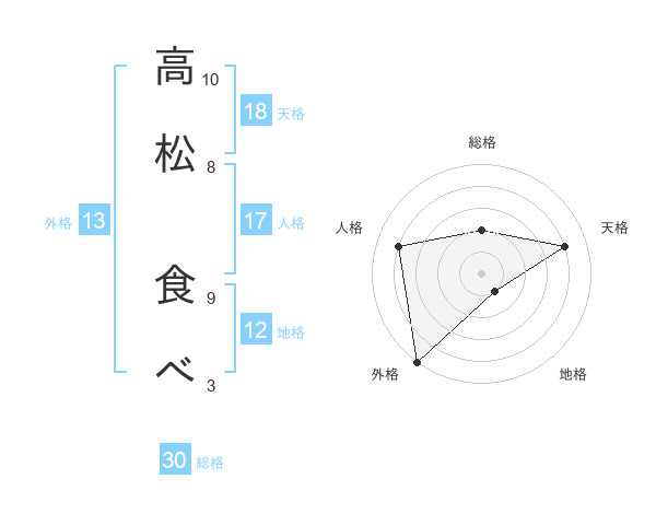 高松 食べさんの天格は18画の4点!