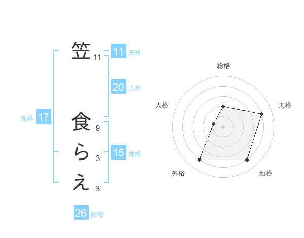 笠 食らえさんの天格は11画の4点!
