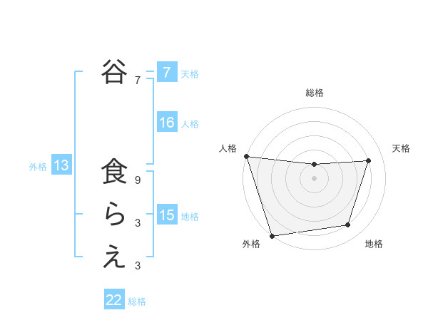 谷 食らえさんの外格は13画の5点!