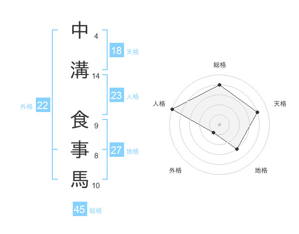 中溝 食事馬さんを姓名の画数から五運を鑑定