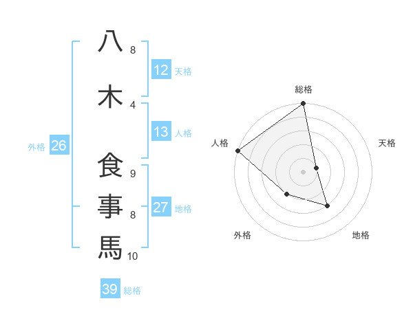 八木 食事馬さんの総格は39画の5点!