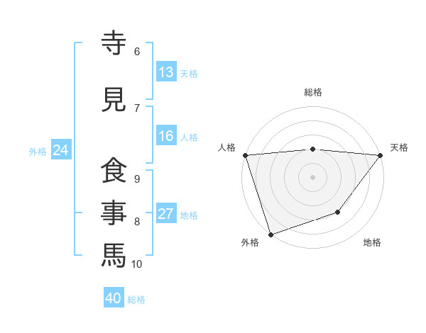 寺見 食事馬さんを姓名の画数から五運を鑑定