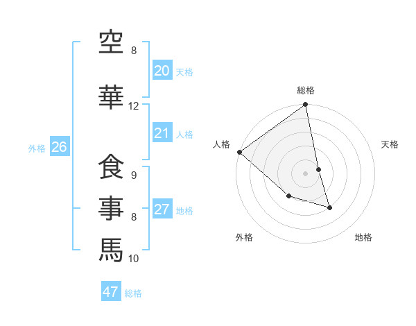 空華 食事馬さんを姓名の画数から五運を鑑定