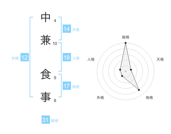 中兼 食事さんの天格は14画の1点!