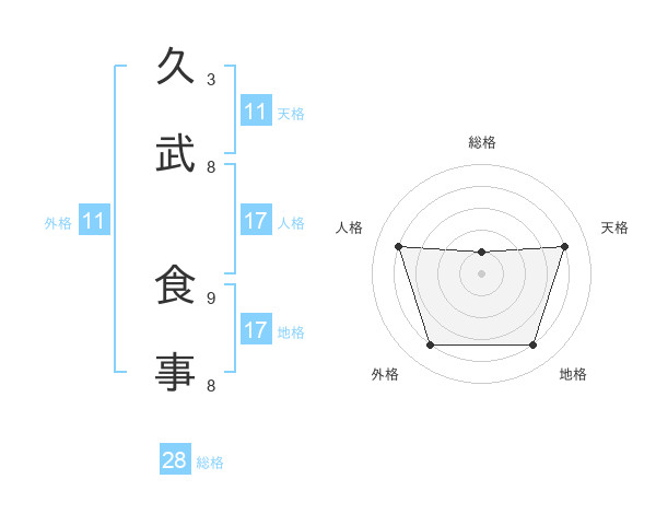久武 食事さんの総格は28画の1点!
