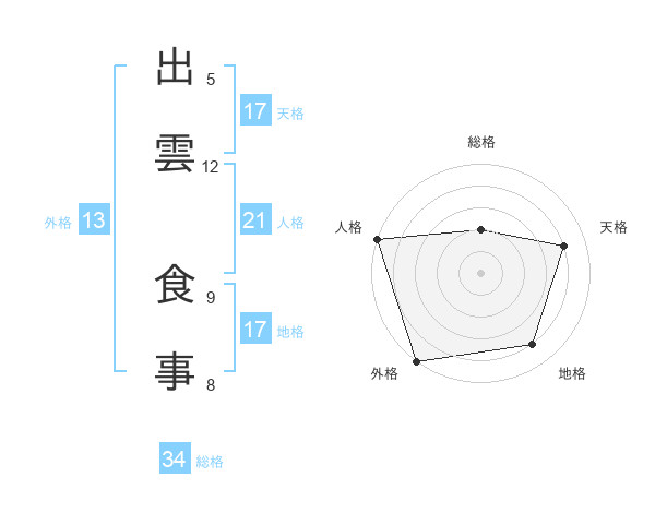 出雲 食事さんの天格は17画の4点!
