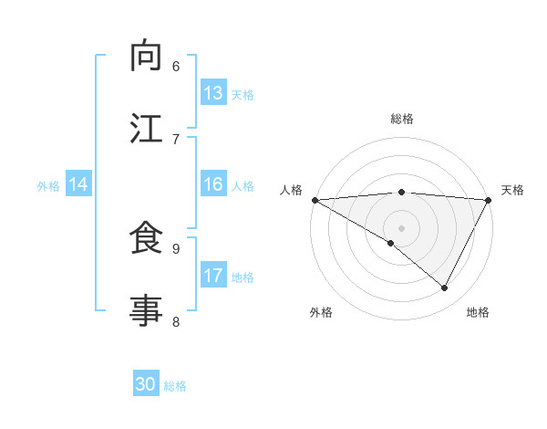 向江 食事さんの総格は30画の2点!