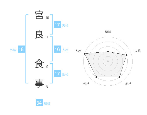 宮良 食事さんの天格は17画の4点!