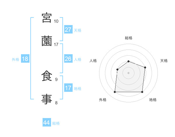 宮薗 食事さんを姓名の画数から五運を鑑定
