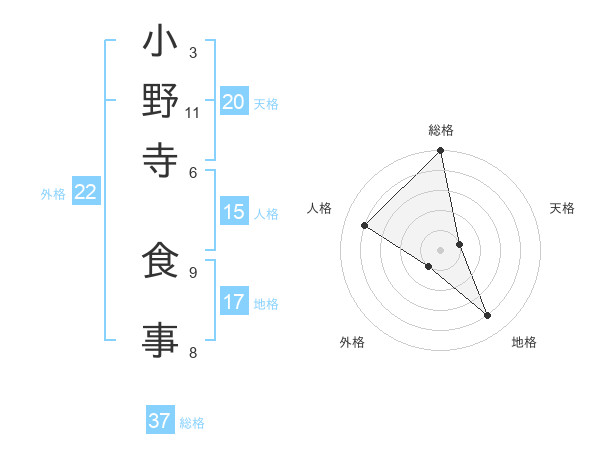 小野寺 食事さんを姓名の画数から五運を鑑定
