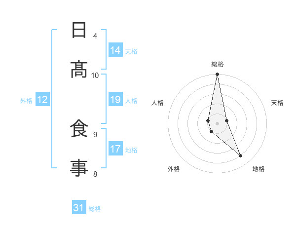 日髙 食事さんの総格は31画の5点!