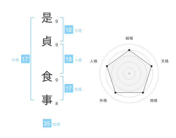 是貞 食事さんの外格は17画の4点!