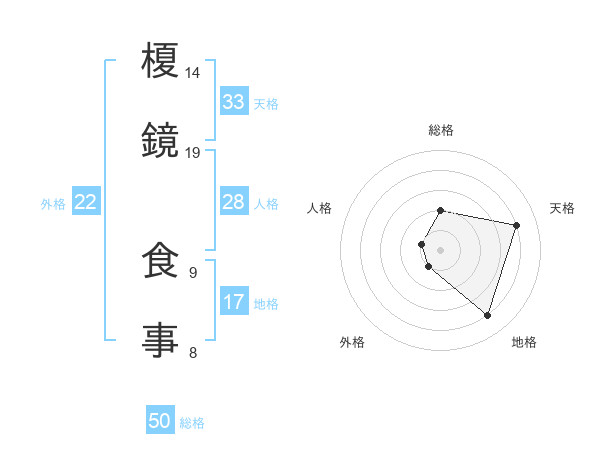 榎鏡 食事さんを姓名の画数から五運を鑑定