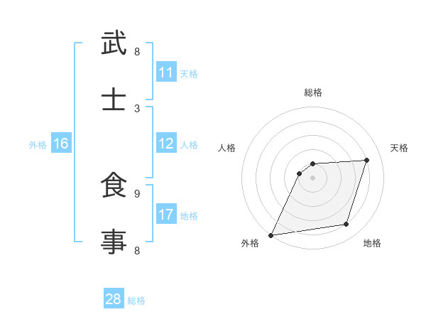 武士 食事さんの総格は28画の1点!