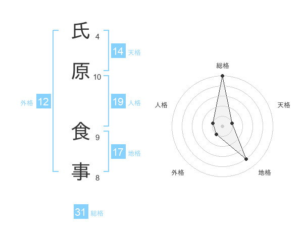 氏原 食事さんの総格は31画の5点!