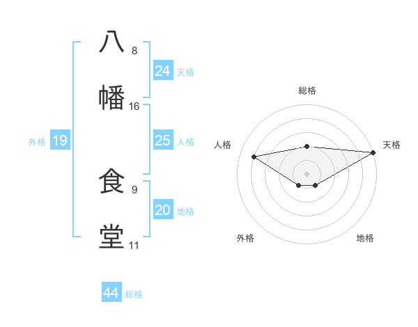 八幡 食堂さんを姓名の画数から五運を鑑定
