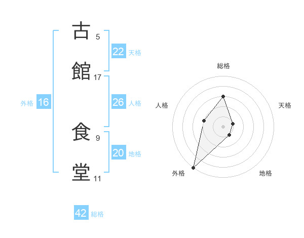 古館 食堂さんの総格は42画の3点!