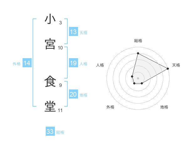 小宮 食堂さんの天格は13画の5点!