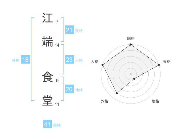 江端 食堂さんの総格は41画の5点!