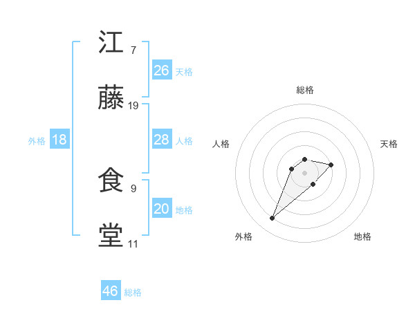 江藤 食堂さんの総格は46画の1点!