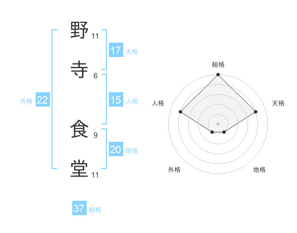 野寺 食堂さんを姓名の画数から五運を鑑定