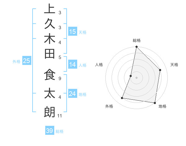 上久木田 食太朗さんの天格は15画の4点!