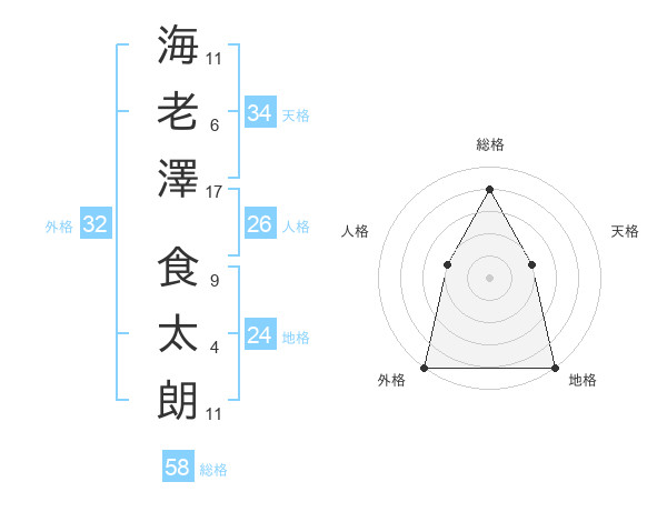 海老澤 食太朗さんを姓名の画数から五運を鑑定