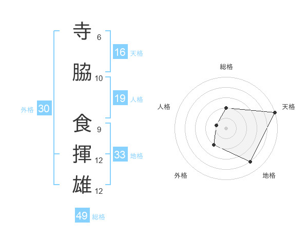 寺脇 食揮雄さんを姓名の画数から五運を鑑定