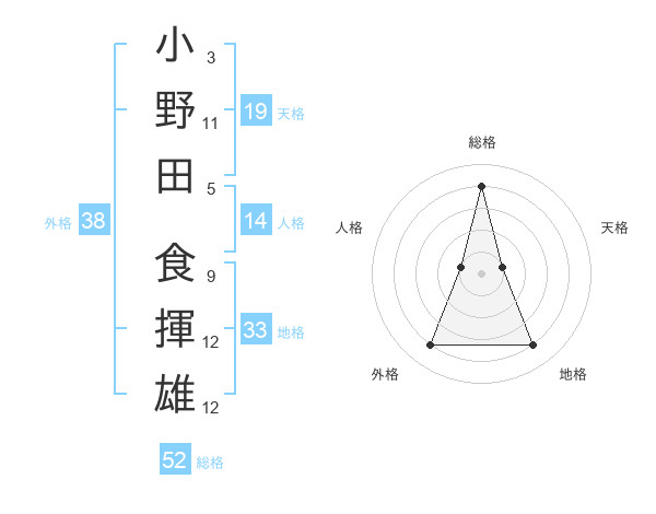 小野田 食揮雄さんを姓名の画数から五運を鑑定