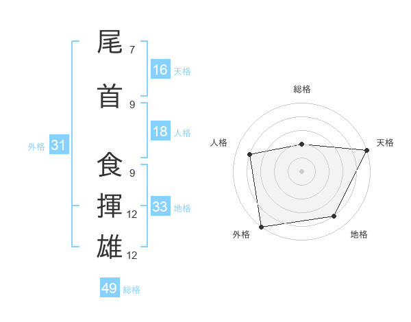 尾首 食揮雄さんを姓名の画数から五運を鑑定