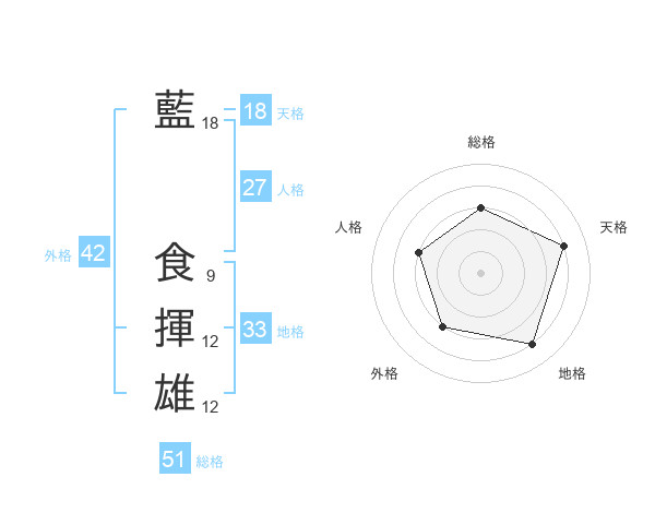 藍 食揮雄さんの総格は51画の3点!