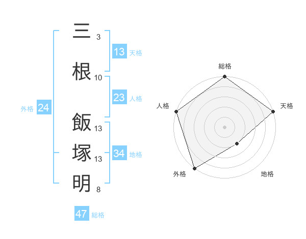 三根 飯塚明さんを姓名の画数から五運を鑑定