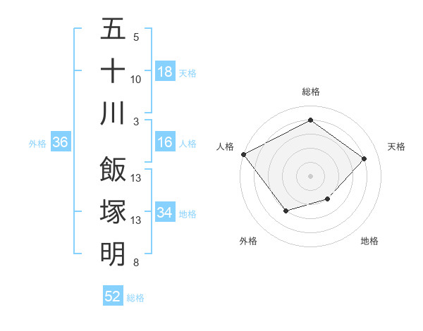 五十川 飯塚明さんの総格は52画の4点!
