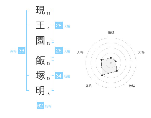 現王園 飯塚明さんの総格は62画の1点!