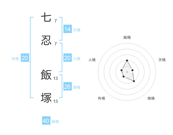 七忍 飯塚さんの総格は40画の2点!