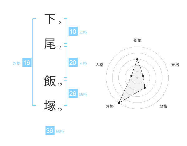 下尾 飯塚さんを姓名の画数から五運を鑑定