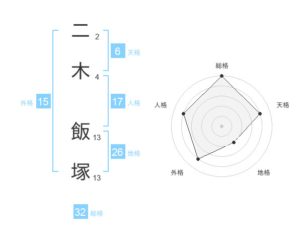 二木 飯塚さんを姓名の画数から五運を鑑定