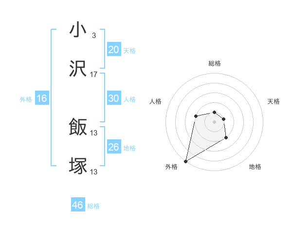 小沢 飯塚さんの地格は26画の2点!