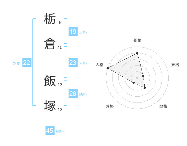 栃倉 飯塚さんの総格は45画の4点!