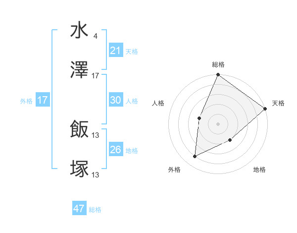 水澤 飯塚さんの総格は47画の5点!
