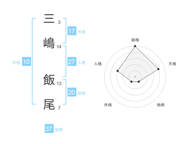 三嶋 飯尾さんの総格は37画の5点!