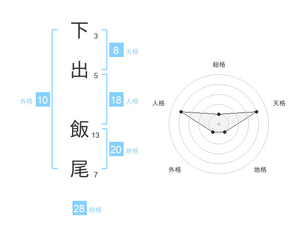 下出 飯尾さんの総格は28画の1点!