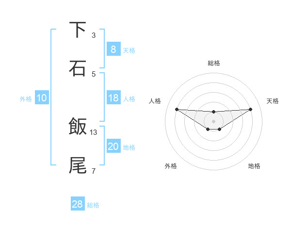 下石 飯尾さんの総格は28画の1点!