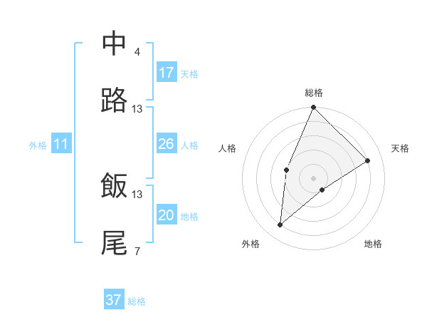 中路 飯尾さんを姓名の画数から五運を鑑定