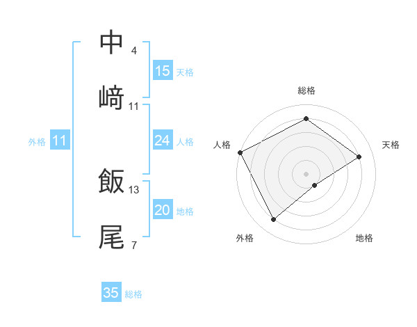 中﨑 飯尾さんを姓名の画数から五運を鑑定
