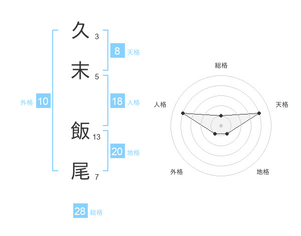 久末 飯尾さんの総格は28画の1点!