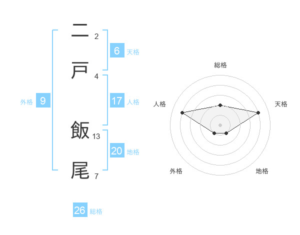 二戸 飯尾さんを姓名の画数から五運を鑑定