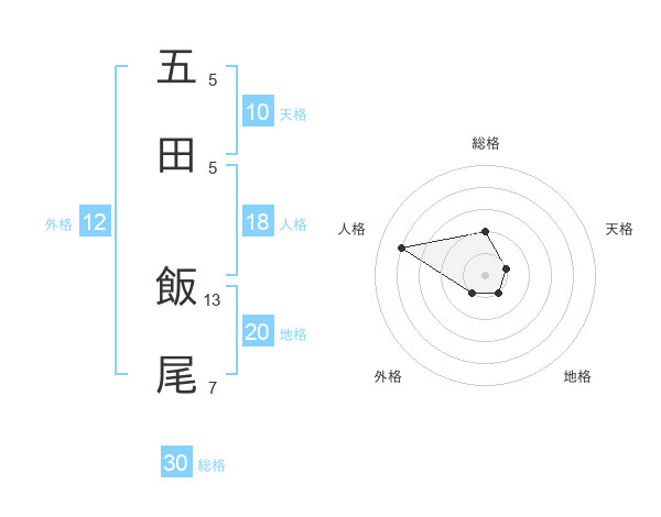 五田 飯尾さんを姓名の画数から五運を鑑定