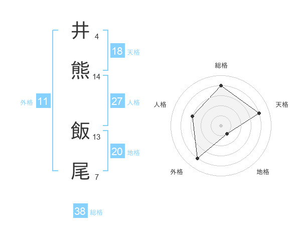 井熊 飯尾さんの総格は38画の4点!
